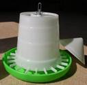 poultry drinker that you can either hang or stand, they also have folding extendable legs. Available in two sizes:- 4ltr
